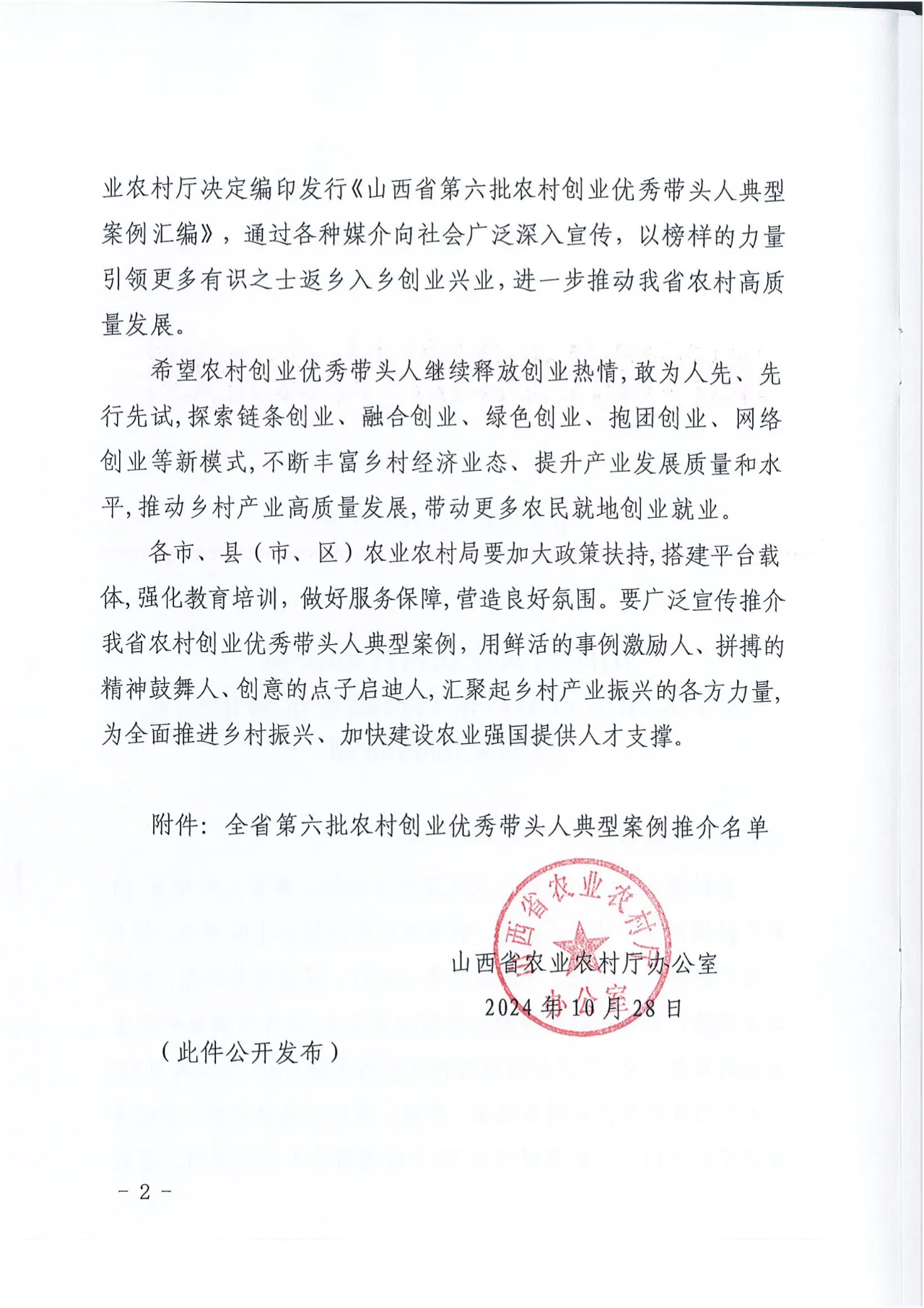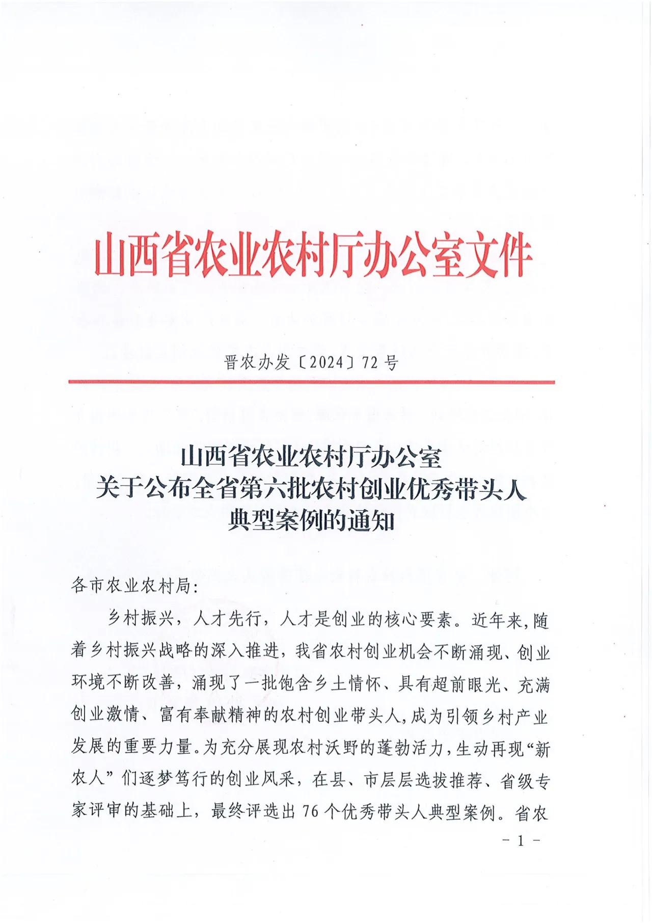 宁化府益源庆董事长郝建国入选全省第六批农村创业优秀带头人典型案例名单