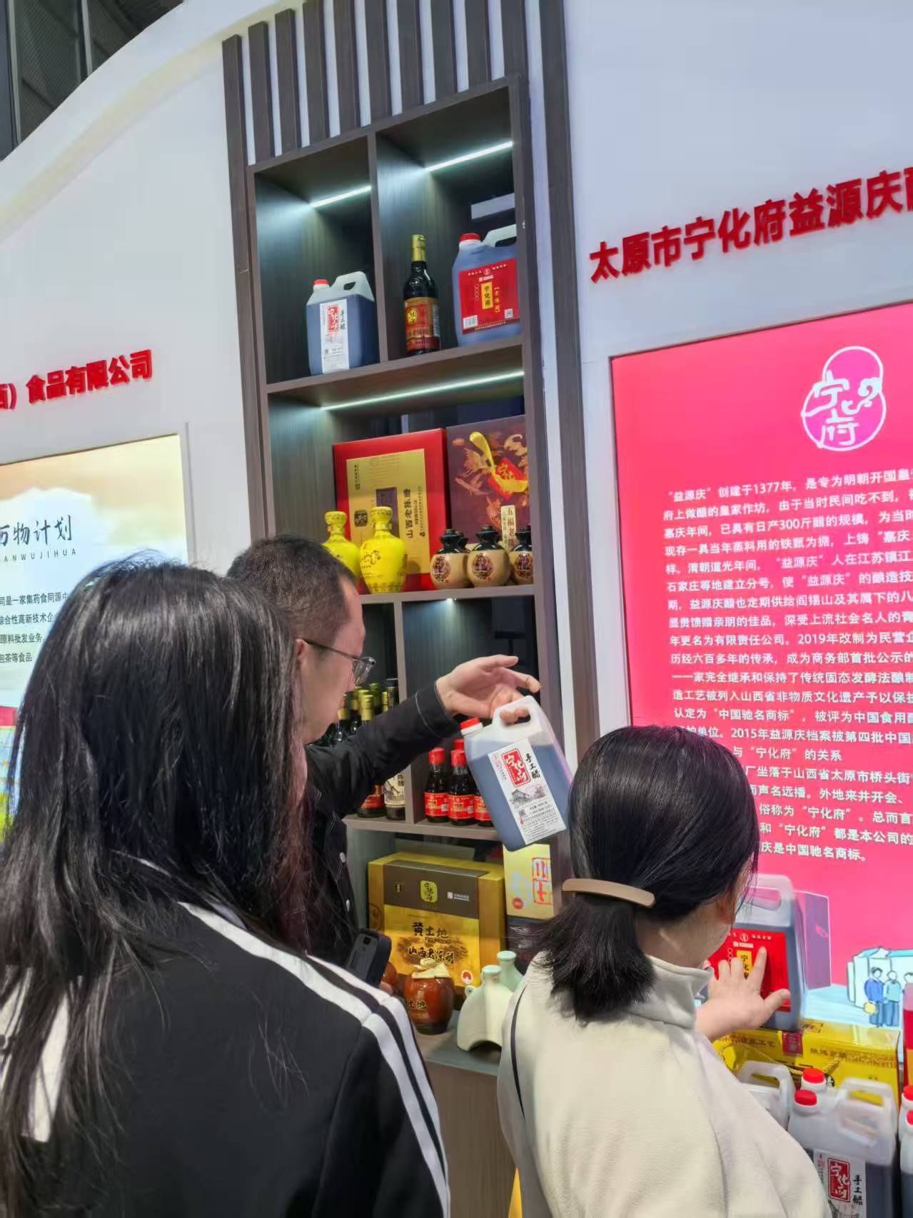 展会期间,宁化府展位前人流如织,咨询和品尝产品的消费者络绎不绝。尤其是我们的十年陈酿老陈醋,以其独特的酸香和层次感赢得了客商们的一致好评。许多客商在品尝后纷纷表示:“这醋闻着就不一样,口感绵甜,酸度醇厚,回味悠长!”现场气氛热烈,充分展现了宁化府产品的卓越品质和市场魅力。
